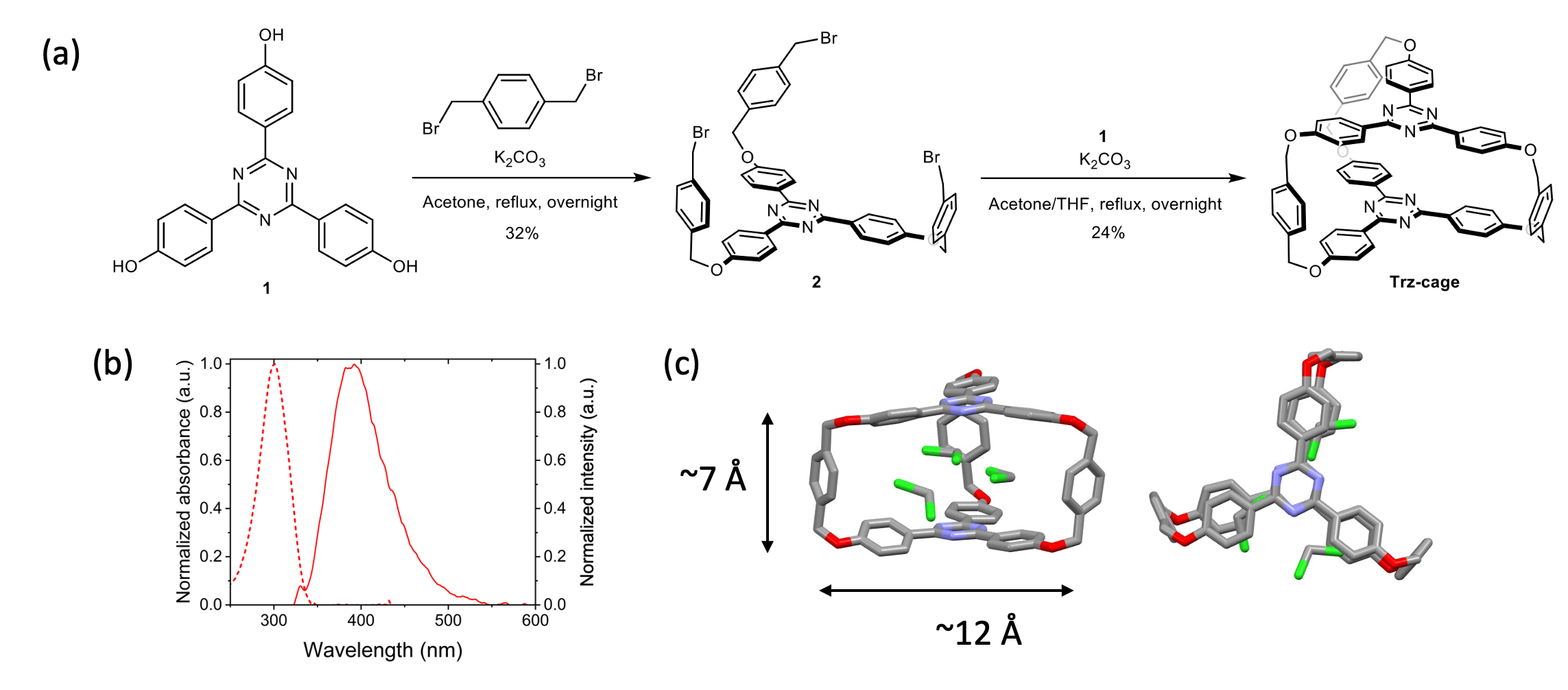 Enlightened by Zhou’s pioneering work, we strategically designed and synthesized an 1,3,5-triazine based cage-like supramolecular host Trz-cage as acceptor (A, Fig. 1). The crystal structure of Trz-cage contains three dichloromethane molecules, indicating the cavity of Trz-cage is large enough to encapsulate various donor guests (D).
