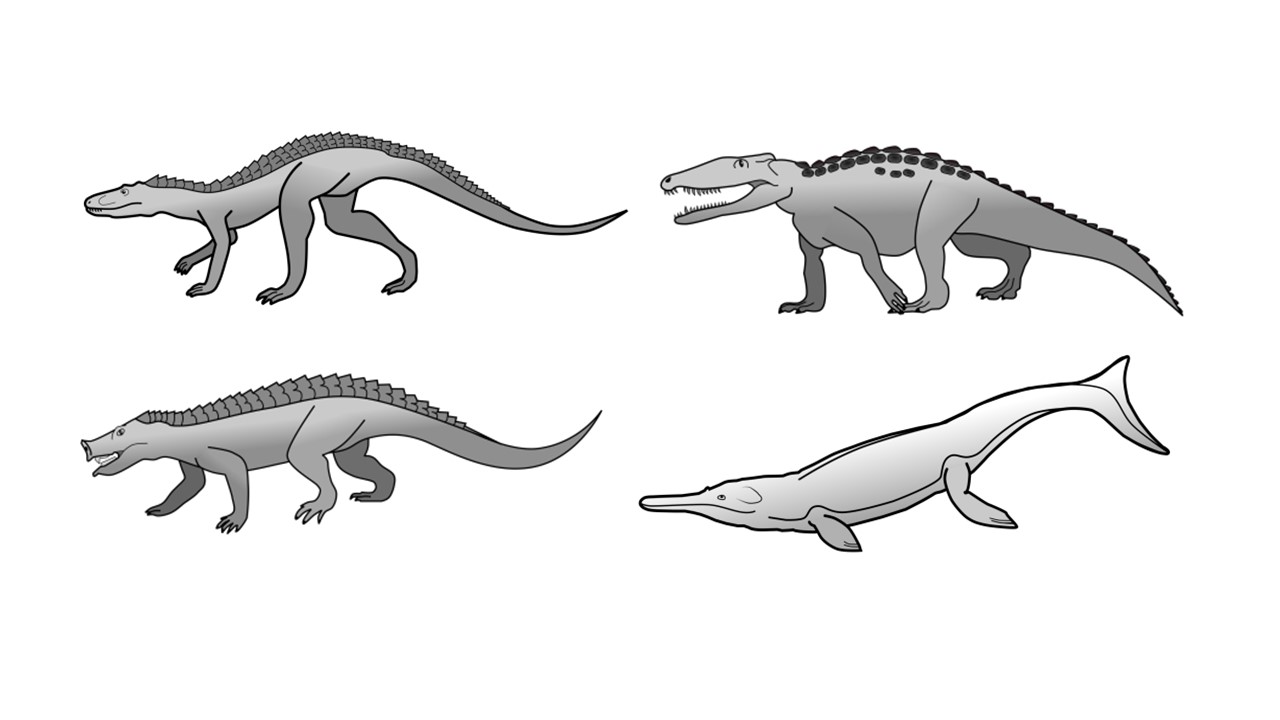 These observations are rather disingenuous and belie what is an incredible evolutionary success story. The armoured, slender-snouted river dweller certainly is an enduring member of the crocodile lineage, but it is by no means the only form that has arisen. The crocodiles and their relatives form a diverse and enigmatic lineage, with many unfamiliar and unexpected variations known from the fossil record. These included fast runners, mammal-like burrowing and digging forms, ocean-going serpentine forms with paddle-like limbs, and even herbivores. The crocodiles have spanned a remarkable spectrum of body sizes, from tiny examples smaller than a cat, to giants as big as a dinosaur. Their tenure on the Earth has also witness cataclysmic changes, including at least 3 major extinction events and huge shifts in climate. Yet, the crocodiles have stoically outlasted all of these changes.