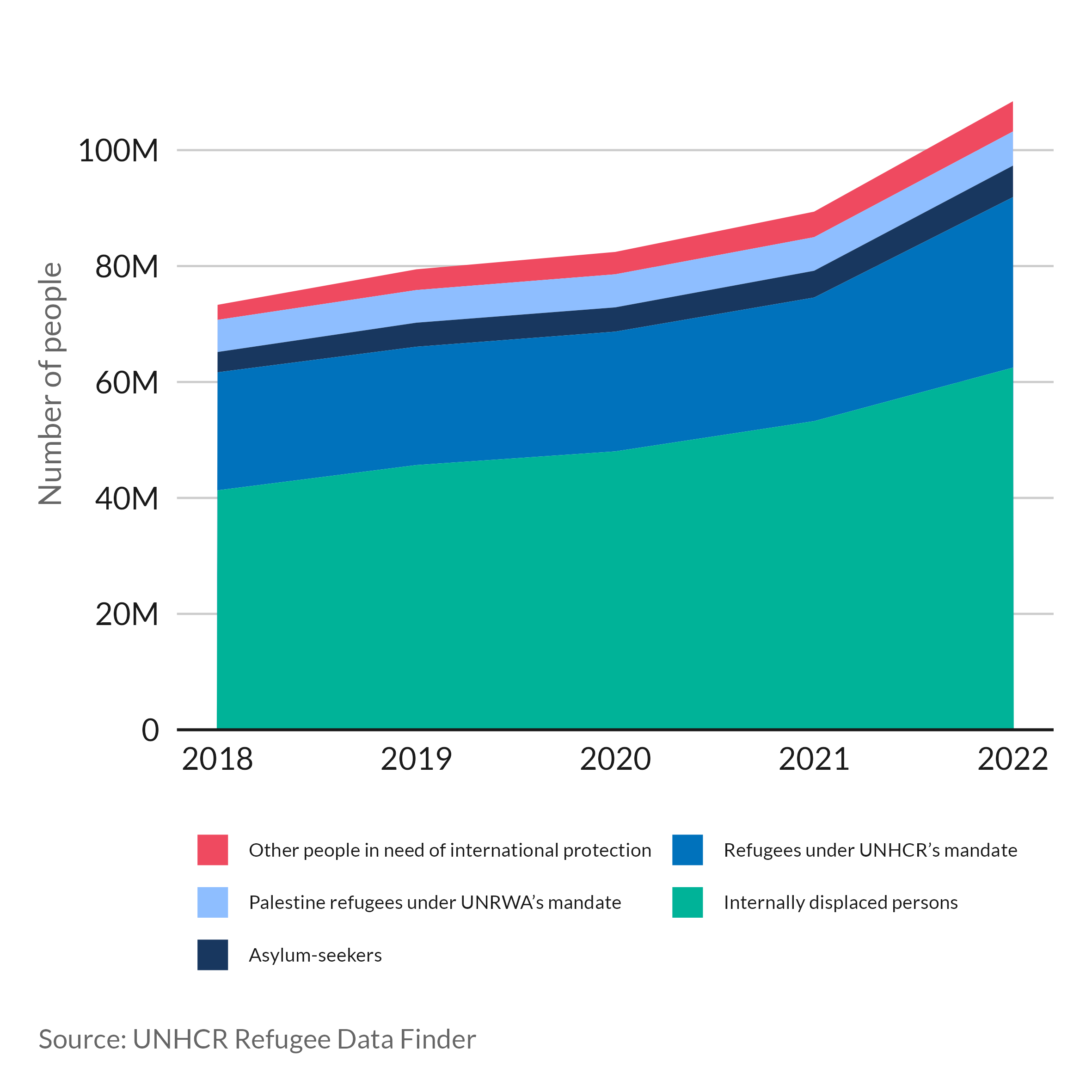 As a result of escalating armed conflict, the number of forcibly displaced people continues to rise worldwide (Figure 1), over 40% of whom are children under the age of 18. Experiences of war and displacement can cause substantial trauma, raising the risk for numerous mental illnesses which can severely disrupt early childhood development [1]. With the least access to mental healthcare [2], many refugee children are robbed of opportunities to reach their full potential in adulthood.