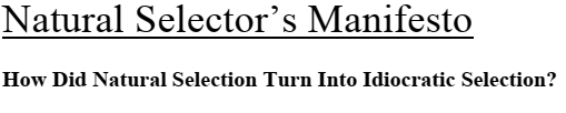 Pekka-Eric Auvinen, who shot eight people in a Finnish school, called himself a “natural selector” and described his act as evolutionary culling. His writings invoked Nietzsche, misanthropy, and cosmic destiny. He was, in his own mind, ''godlike'', above humanity, beyond morality. See figure 1.