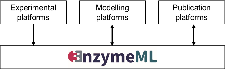 But there is hope, as we demonstrate in our paper on "EnzymeML: seamless data flow and modelling of enzymatic data" (https://www.nature.com/articles/s41592-022-01763-1). This paper describes a novel standardized data exchange format, EnzymeML, which is based on the widely used Systems Biology Markup Language3. EnzymeML serves as a format to comprehensively report the results of an enzymatic experiment: reaction conditions, measured data, the kinetic model, which was applied to analyse experimental data, and the estimated kinetic parameters4. EnzymeML provides a seamless communication channel between experimental platforms, electronic lab notebooks, tools for modelling of enzyme kinetics, publication platforms, and enzymatic reaction databases (Fig. 1).