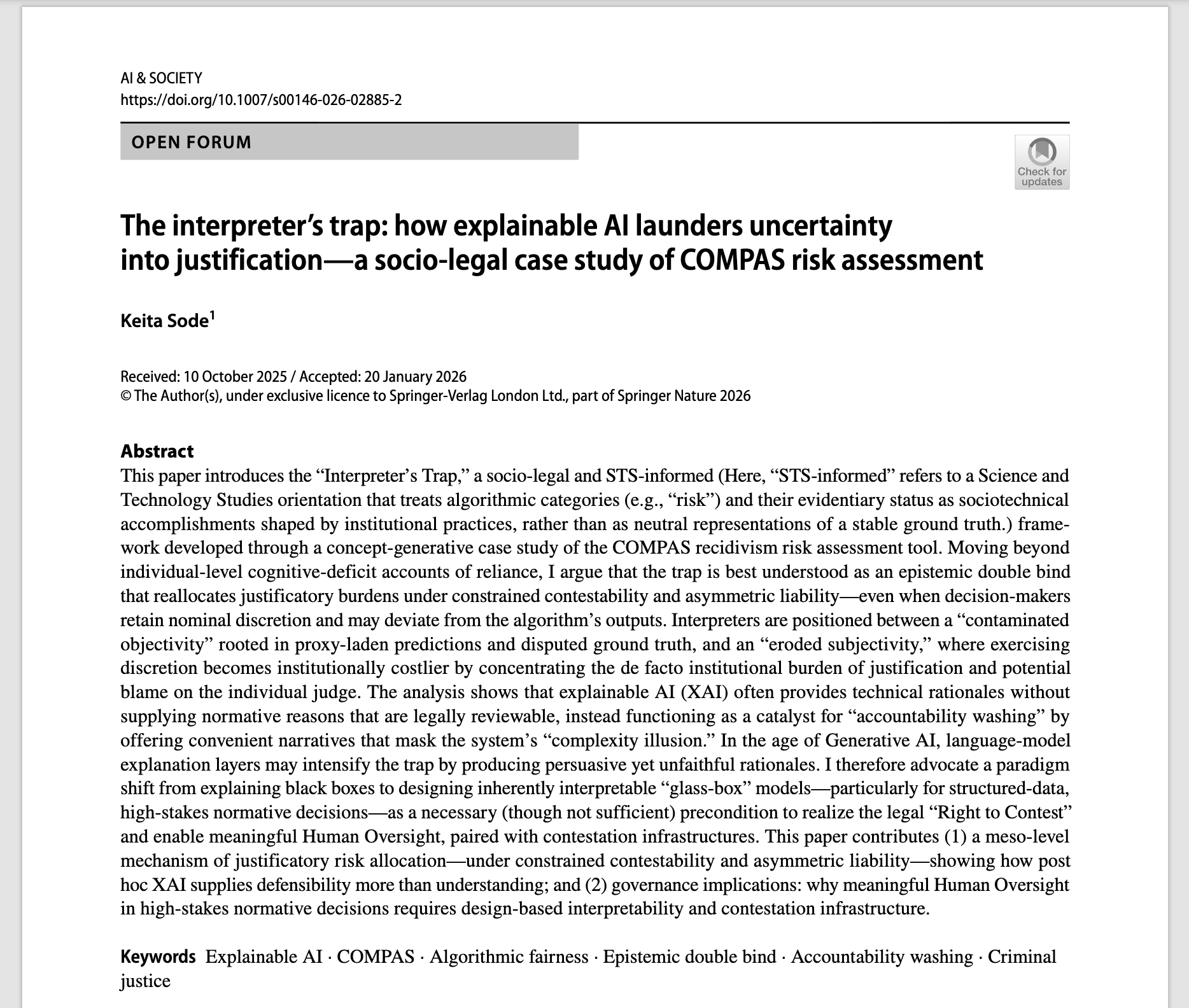 As this was my first peer-reviewed article, the research process itself was a steep learning curve. While the initial drafts were unpolished, rigorous feedback from reviewers helped me refine my critique from simple technological skepticism into a robust socio-legal framework. This process taught me that the "trap" is not just about the algorithm, but about the specific legal and organizational structures that incentivize deference to machines.
