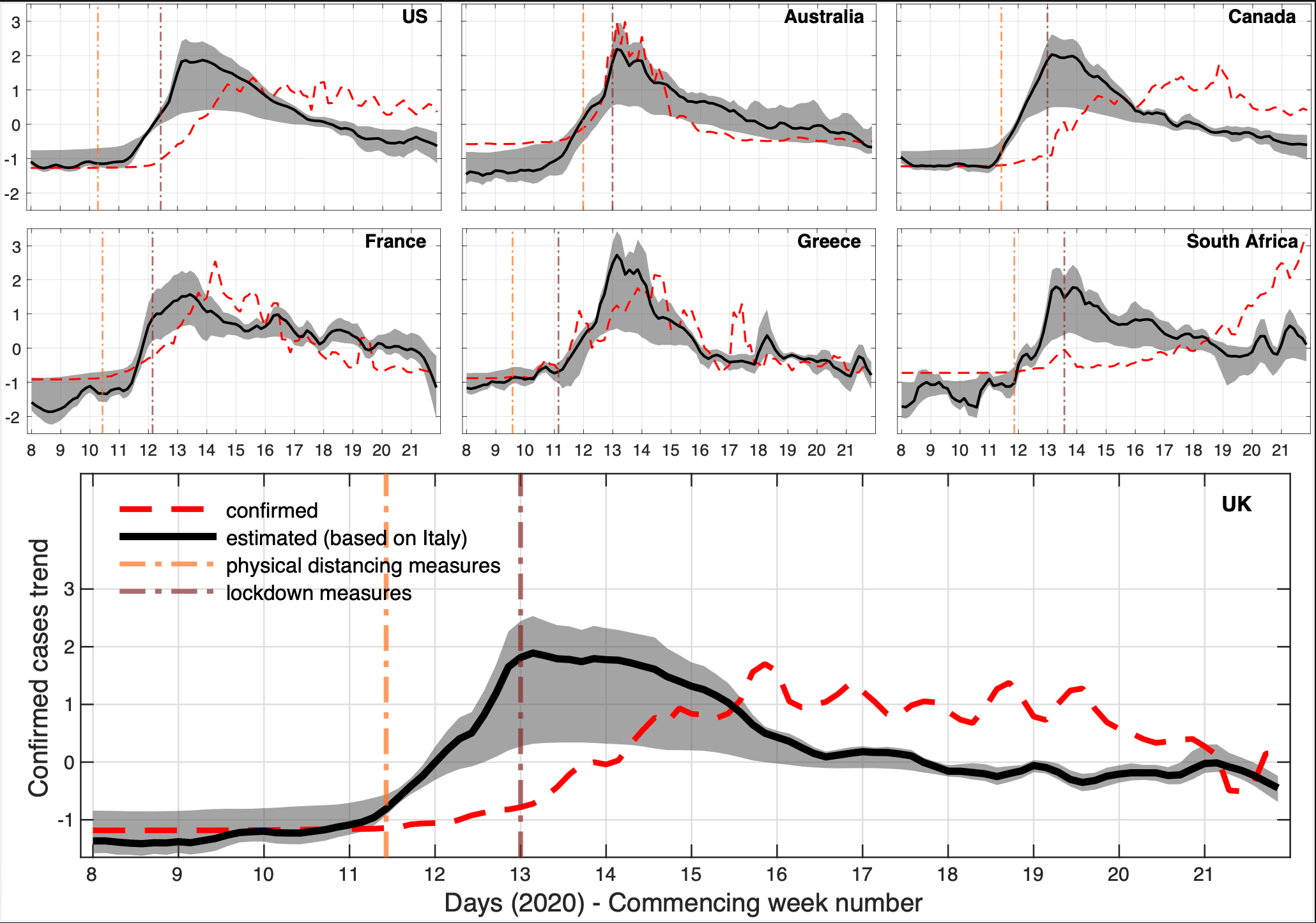 A limitation of our study is that in contrast to past efforts it was hard to evaluate the accuracy of our approach as clinical indicators were (are) not necessarily representative of disease prevalence. However, when we compared our COVID-19 scores in England with prevalence estimates obtained from a COVID-19 swabbing scheme (Royal College of General Practitioners), which was based on non-COVID-19 cases as well and could therefore provide a more representative statistic, we found strong correlations (>.80). We also assessed the hypothesis that the COVID-19 outbreak in Italy, which was the first major outbreak in Europe, might have Granger-caused an increase in the frequency of search terms elsewhere. We concluded that more than 70% of the search terms we used were not affected by the events in Italy. In addition, we: (a) reduced news coverage influence, and (b) need to consider that Granger-causality might in this case be misleading because COVID-19 could have emerged at the same time in Italy and other locations (especially in Europe).