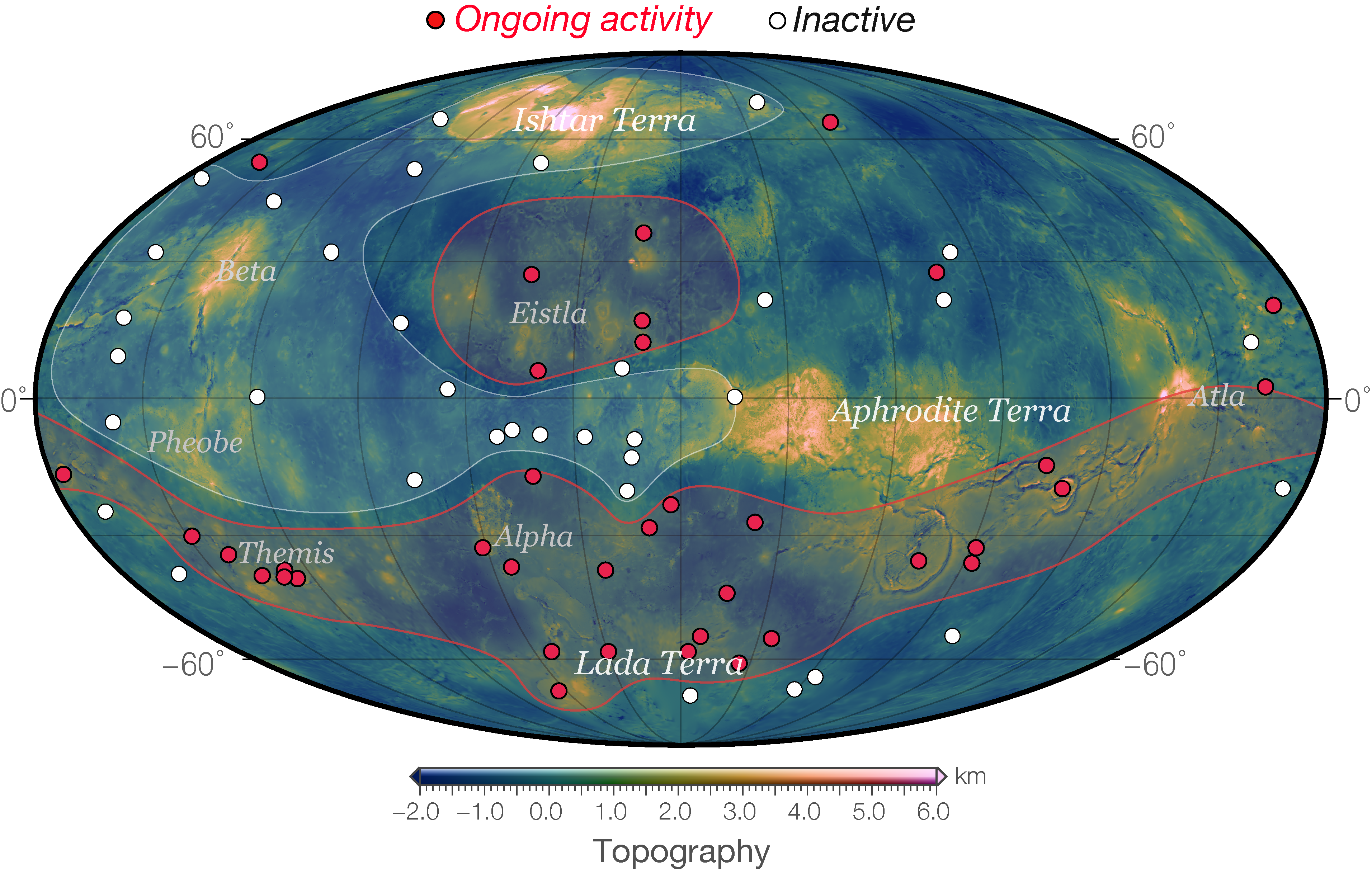 These results present new evidence for widespread recent tectonic and magmatic activity on the surface of Venus, supporting team 'geologically active Venus'. The planet's dynamics may be much more akin to Earth-like volcanic and interior processes than originally thought. Moreover, the global distribution of these active coronae may suggest that Venus has a sort of 'ring of fire', like the Earth, only from a different origin. Clearly, how this global distribution reflects the circulation patterns of the deeper interior remains something to explore further.
