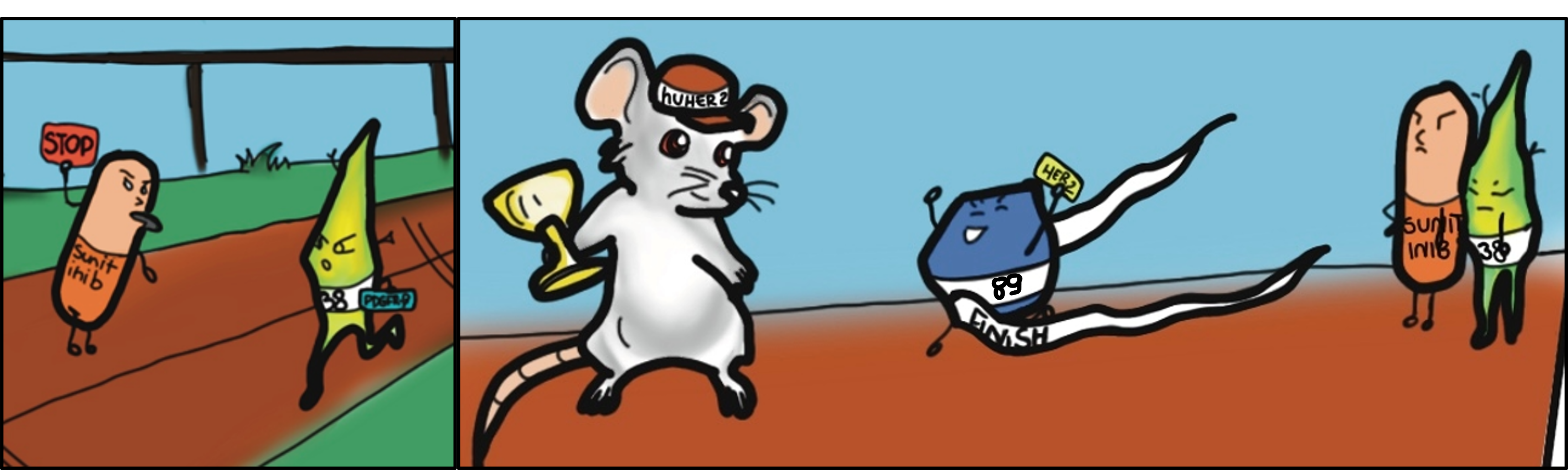 With the help of RNA-sequencing analysis we identified platelet-derived growth factor receptor beta (PDGFR-β) as a possible pathway that sustains the malignant phenotype of MamBo38HER2loss cell line that have lost their addiction to HER2. PDGFR-β is known to be involved in EMT promotion, stemness phenotype, it is a pericyte marker and is a druggable target by sunitinib.