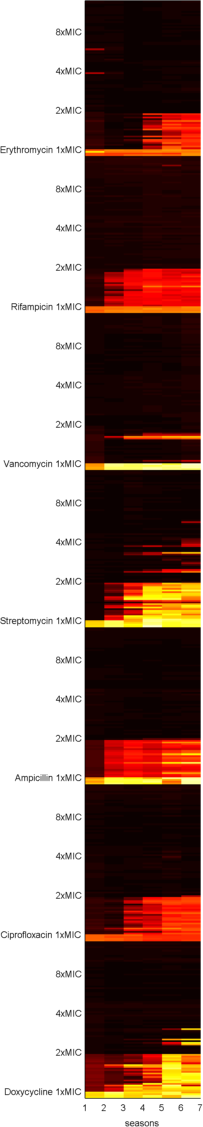The data even looks quite 'hot' in the 2xMIC zone of doxycycline by the 7th round of treatment (called seasons in the image).