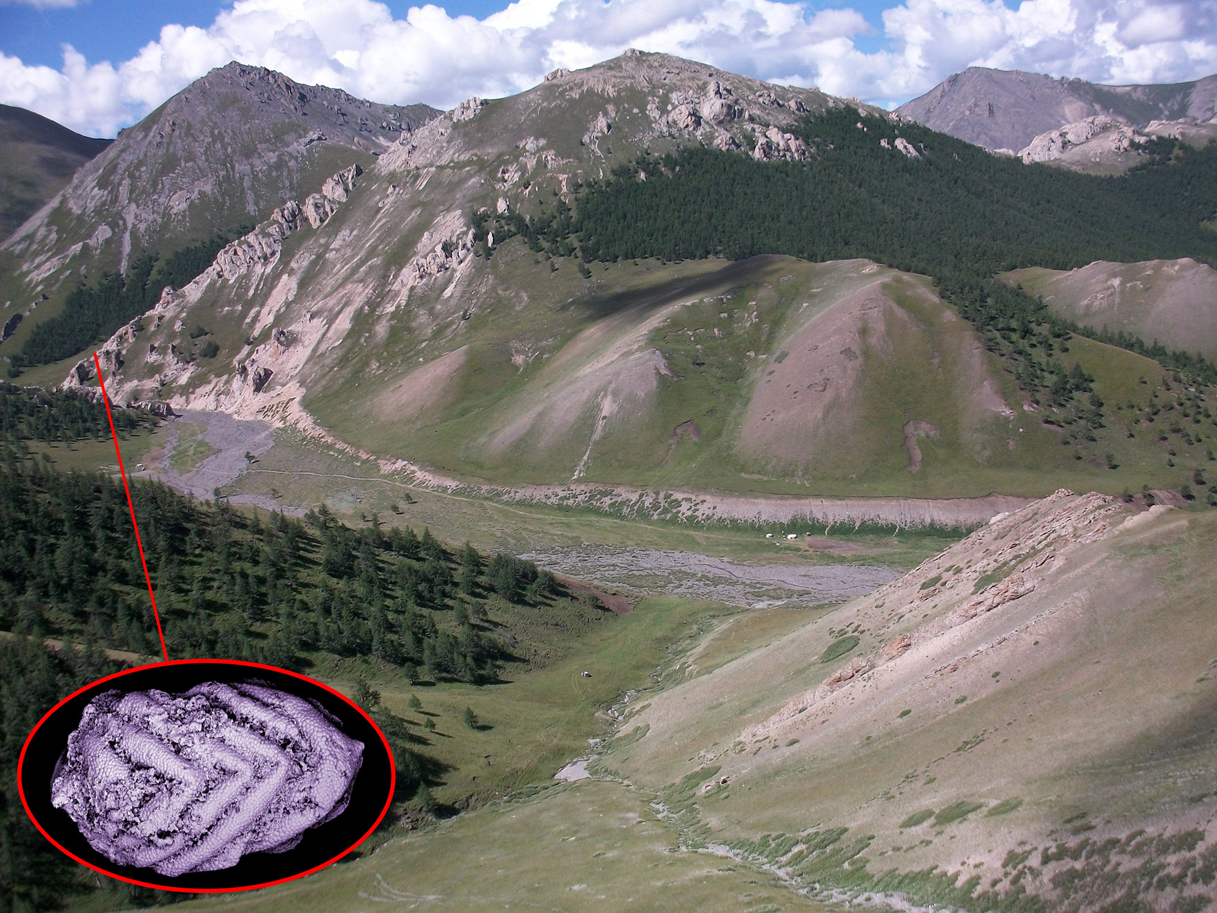 We studied assemblages of early Cambrian Small Shelly Fossils (SSFs) from the upper sediment layers of the different Mongolian tectonic blocks of the CAOB, which allowed us to form conclusions about their paleobiogeographic relationships. SSFs, ranging in size from 0.1-2 mm, are the mineralized skeletal remains of various metazoan groups from the early Cambrian (~540-520 million years ago), the beginning of animal life. Still enigmatic, many SSFs origins, appearances and classifications are currently unknown.