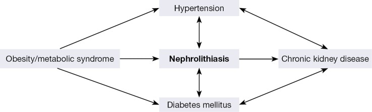 Existing theories suggest obesity, metabolic syndrome, or diabetes as precursors of kidney stone formation (Figure 4). Such alterations are also associated with chronic kidney disease and kidney injury [De Vries 2014]. Since these pathologies are defined by a common intermediate clinical feature of endothelial dysfunction, they are frequently associated with inflammatory biomarkers such as reactive oxygen species, alongside upregulated Piezo1 and TRPV4 channel proteins [Diaz-Ricart 2020].