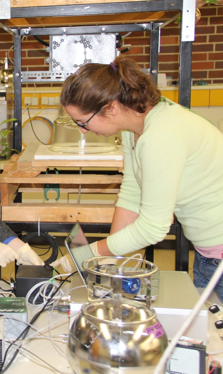 At the beginning of my PhD I assisted lab-based experiments focusing on the impact of ozone on different tobacco varieties. We could show that ozone tolerant tobacco species inhibit a sophisticated defense strategy against elevated ozone exposure. Glandular trichomes, which are small, hair-like structures, secret specialized diterpenoid metabolites to the leaf surface. These intermediate volatile organic compounds (IVOC) cover the plan surface acting as ozone scrubber thus strongly reducing stomatal uptake of ozone (https://doi.org/10.5194/acp-16-277-2016).