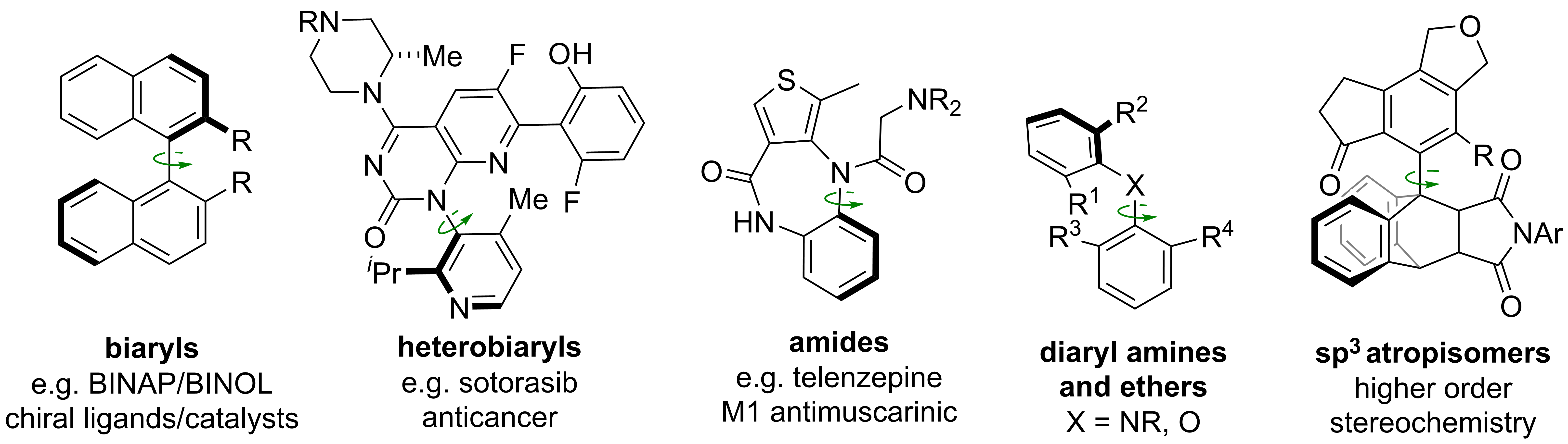 Atropisomers are molecules whose stereogenicity arises from restricted rotation about a single bond. They have garnered significant attention due to their applications in catalysis, medicine and materials science. The archetypal examples are axially chiral biaryls such as BINAP and BINOL, which represent some of the most important ligand and catalyst architectures available for asymmetric catalysis. However, atropisomerism is also increasingly being studied in other molecular scaffolds, including axially chiral heterobiaryls, amides, diarylamines, and sp3 systems, with a variety of elegant synthetic approaches now available for the stereoselective preparation of such compounds (Figure 1).