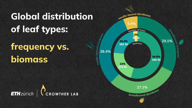 But another interesting detail was missing: By combing our results with biomass data, we could show that even though there aren't as many broadleaved evergreen trees, they make up more than half of the tree biomass worldwide. This concentration of biomass within broadleaved evergreen trees underscores their pivotal role, particularly in the context of pan-tropical forest restorations. These regions face vulnerabilities posed by climate change and human-induced land use changes. Recognizing the significance of broadleaved evergreen trees in these landscapes is pivotal for effective conservation and restoration efforts.