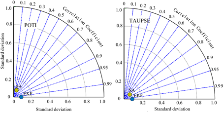 A Taylor diagram summarizing correlation, standard deviation, and RMSE among PSMSL, EKF, and SA confirms that EKF estimates cluster tightly around observed data, indicating near-perfect statistical agreement, while satellite-based estimates deviate significantly (Fig. 2). This visualization underscores EKF’s value in refining observational datasets, improving reliability for model validation and risk evaluation.