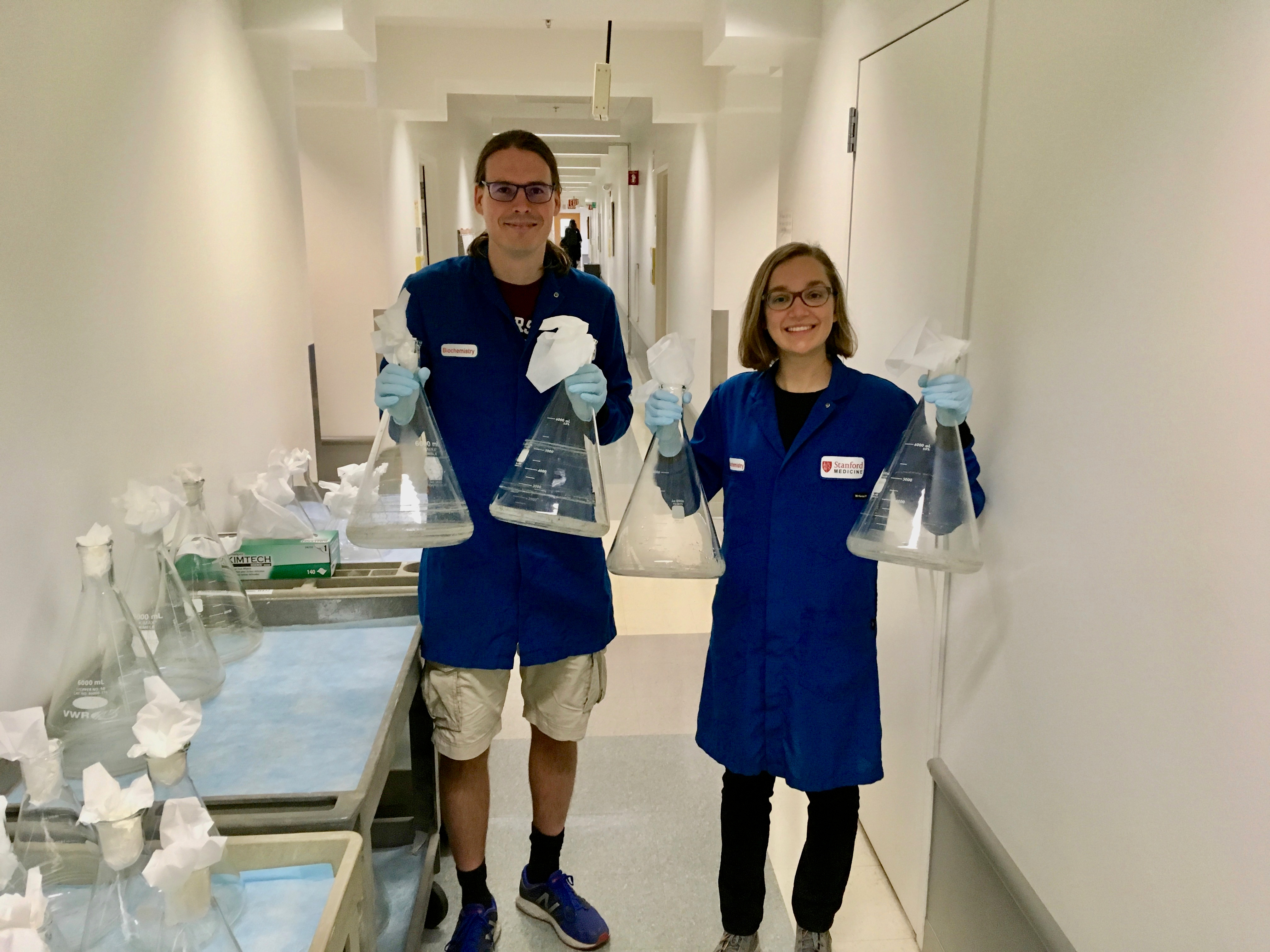 Here’s where we connected the dots: we knew cancer cells could export cGAMP. We also knew immune cells import cGAMP, from other work in Lingyin’s lab (Ritchie and Cordova et al., Mol. Cell. 2019; Lahey et al., bioRxiv 2020). I teamed up with postdoc Dr. Volker Böhnert, my coauthor, and depleted extracellular cGAMP from mice to see what would happen. We actually needed to produce our own cGAMP-neutralizing protein – in total, we purified over 1 gram of protein, which corresponds to 50 liters of protein-expressing bacteria!