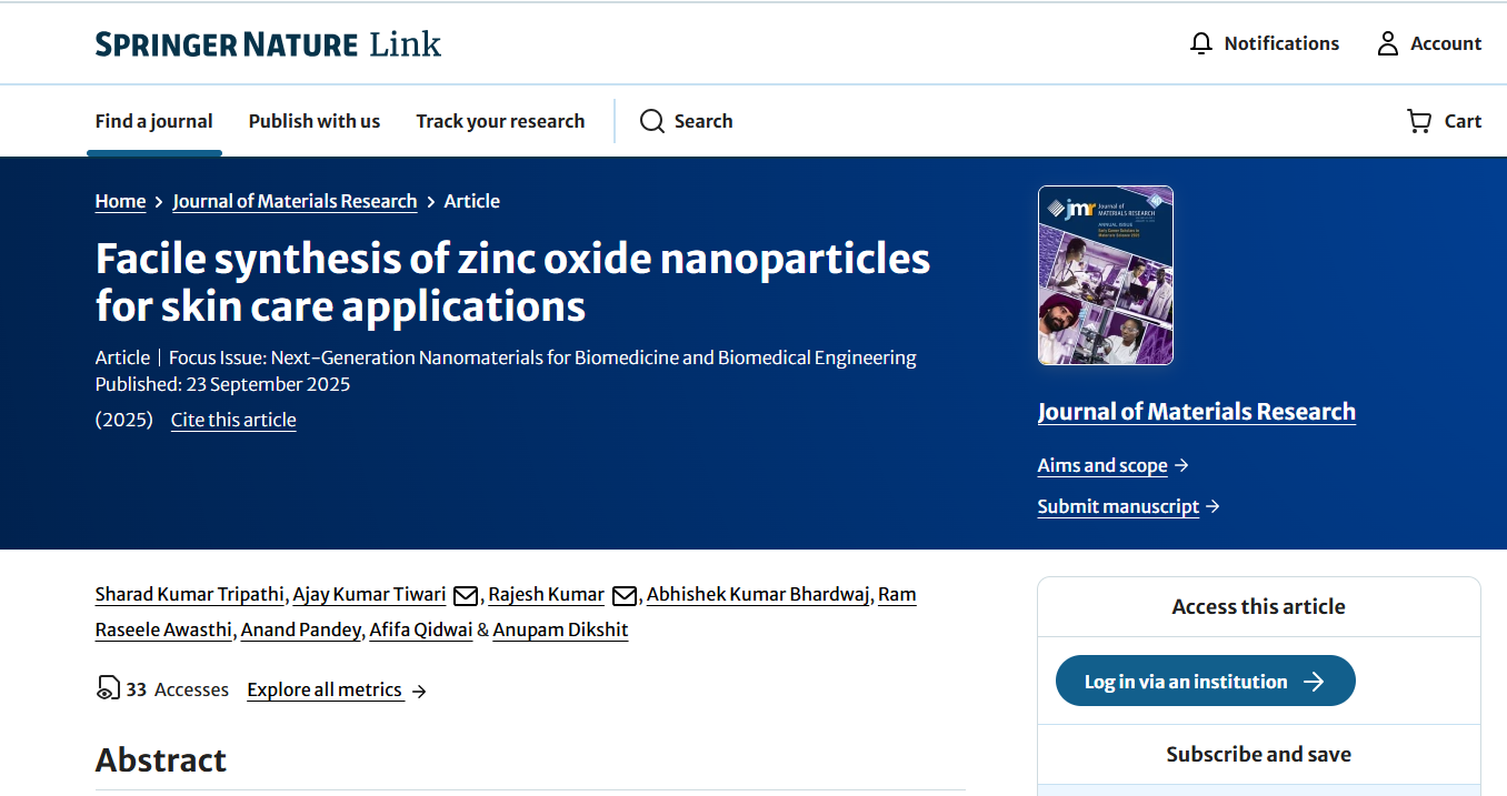 Facile synthesis of zinc oxide nanoparticles for skin care applications