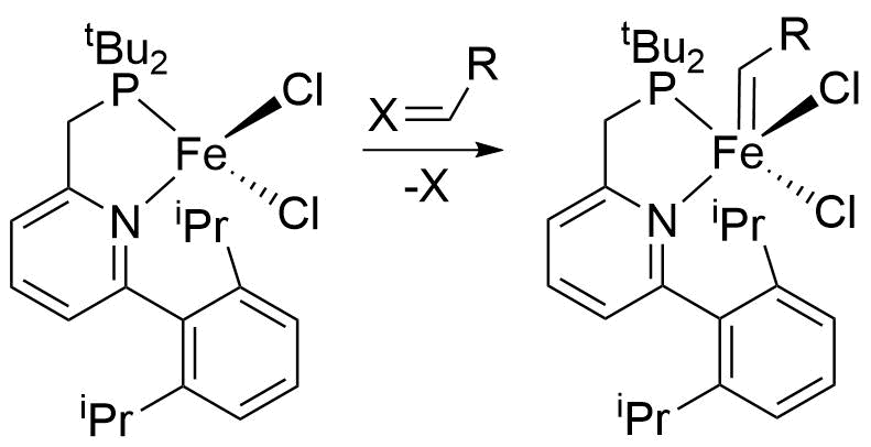 Unfortunately, after a few months of study, we concluded that the aimed reaction could not be achieved using 1. This brought us to repurpose 1 for another challenging reaction, Fe-catalyzed olefin metathesis. Initially, we tried to prepare Fe-carbene complexes using carbene transfer methods used to prepare Ru-carbenes (Figure 2).