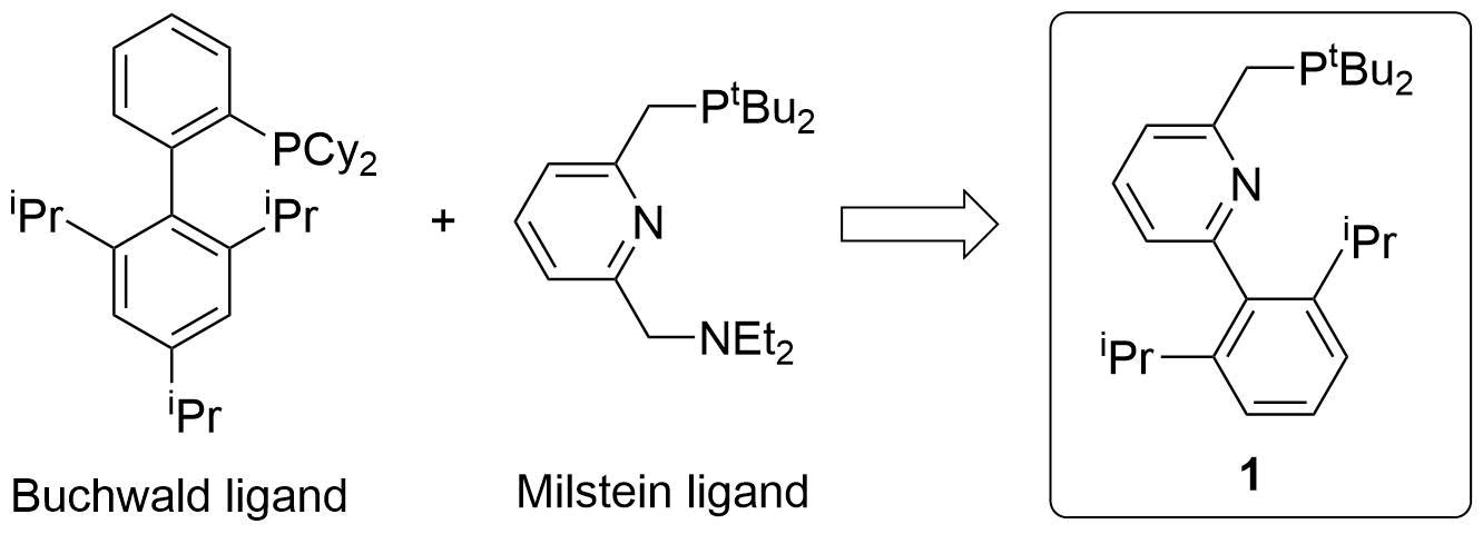 I started to work with David in July 2012 as a postdoc. The first thing that David asks every new postdoc is to talk to lab members and find out what they want to tackle. I picked up one of the most difficult projects that have been investigated since the late 1980's in the group. For this catalytic reaction, reductive elimination was believed to be the crux of the cycle. This is why I designed the bulky PN ligand 1, which was assumed to promote reductive elimination like Buckwald ligands do while maintaining a metal-ligand cooperativity function developed by the Milstein group (Figure 1).Â