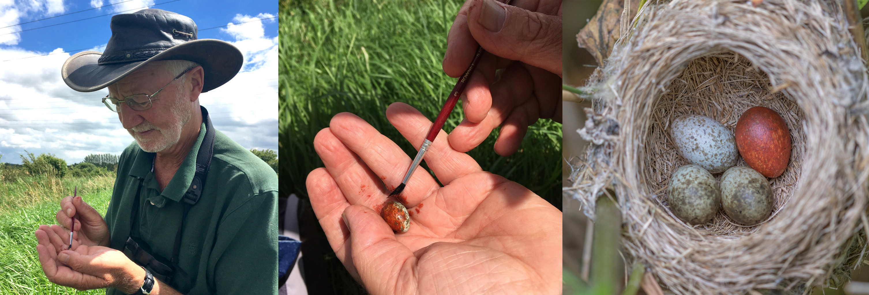 Our final experiment tested whether the female cuckoo’s hawk-like chuckle call influenced host defenses. We painted one reed warbler egg at random to simulate parasitism, placed a cuckoo model above the nest, and then played one of the four calls. The results showed that female cuckoo and hawk calls do indeed reduce egg rejection, compared to male cuckoo or dove calls!