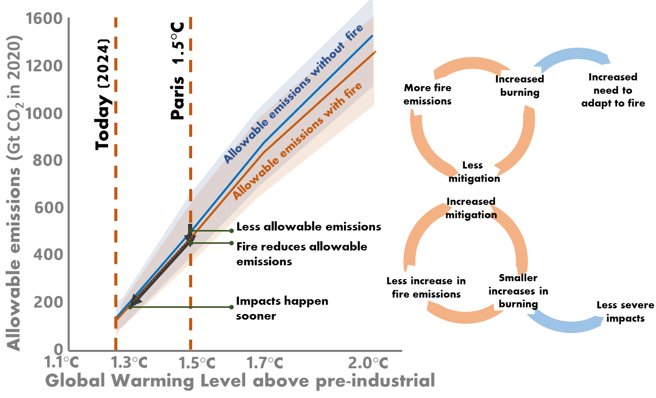 As we approach the recommended limits of global warming set by the Paris Agreement, with warming already at 1.3°C above Pre-Industrial, our study asks: At what level of global warming do fires affect the world's forests and carbon sinks? Fires are long known for their role in shaping ecosystems and are increasingly seen as a critical factor that could influence the global carbon balance. So, we want to know what these fire impacts suggest for the Paris Agreement’s ambition to avoid the worst impacts of climate change.