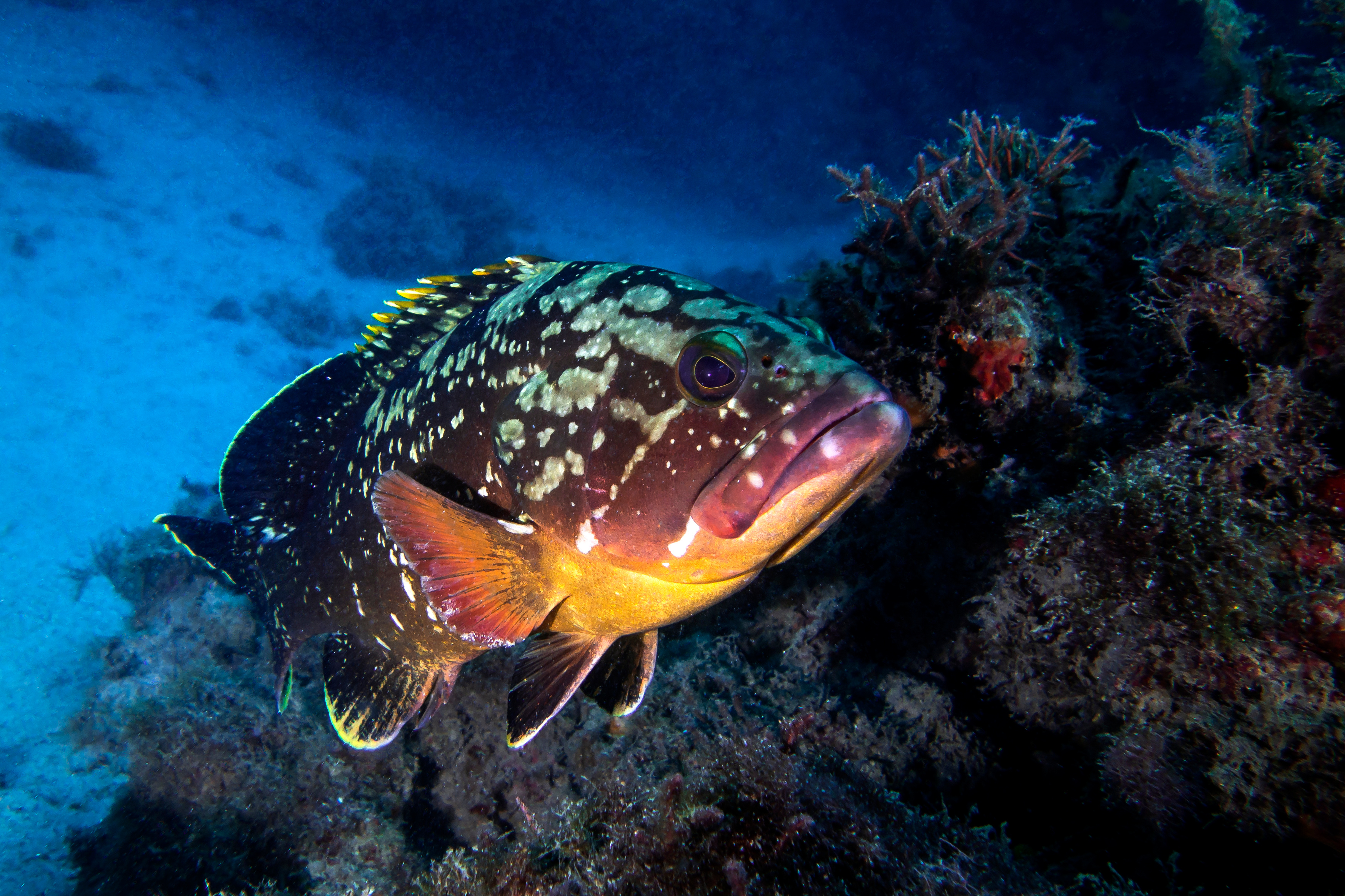 Should I stay or should I go? Groupers (in the photo Epinephelus marginatus) are among the most valuable fish in the Mediterranean rocky reef. They can be found in large numbers at Yam Rosh Hanikra, a no-take Marine Protected Area in Israel. Photo credit: Dr. Shevy Rothman.
