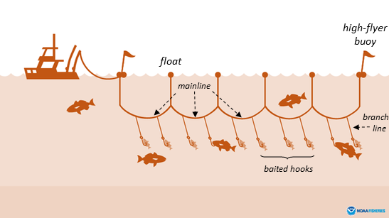 Commercial fishery observers collect important data for the NOAA National Marine Fisheries Service, primarily the number of desired target species caught. Catch of other species is also reported including bycatch, which are non-target species caught then released, and incidental catch, which are non-target species caught and retained. Data on fishing effort, for example, the number of hooks deployed or duration of fishing, are also collected.