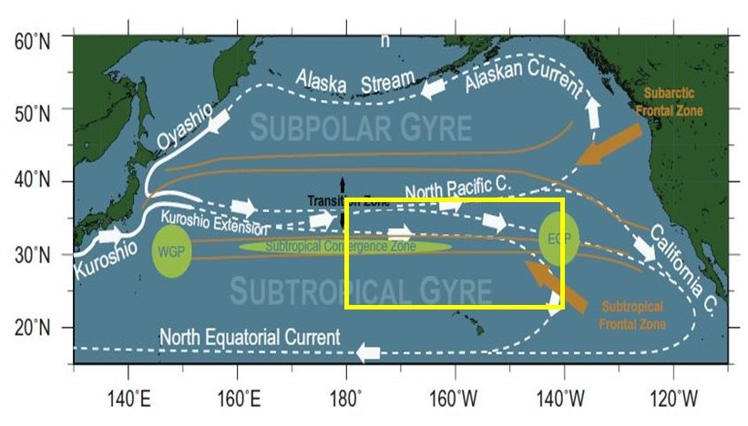 The STCZ is also an area where marine debris accumulates, most notably in the convergence zone’s eastern region, dubbed the Great Pacific Garbage Patch. Thus, it is not unusual for longlines to snag marine debris. Longlines appear to selectively “catch” derelict fishing gear from other commercial fisheries operating throughout the North Pacific Ocean.