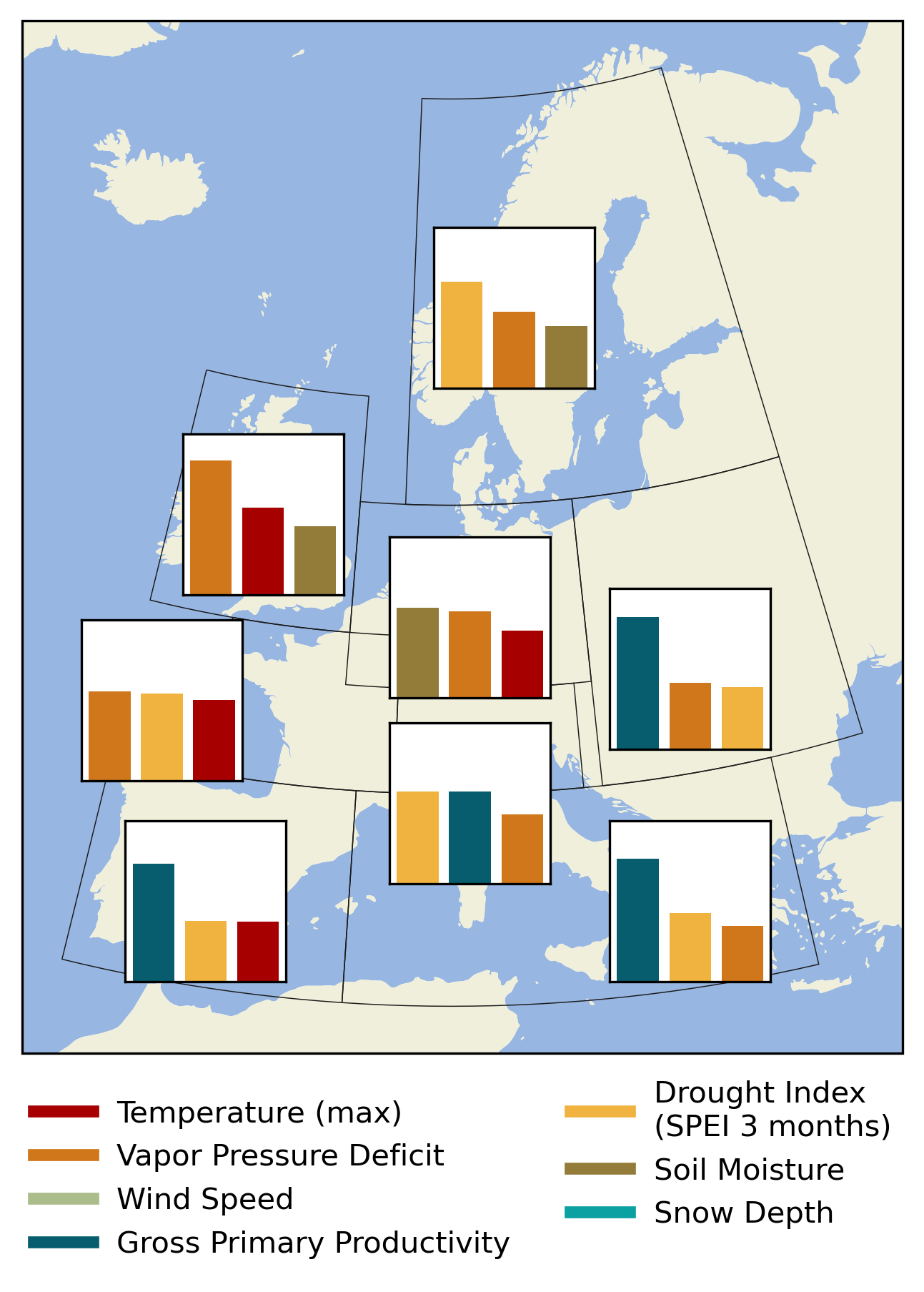 In southern and central Europe, drought and atmospheric dryness often persist for months before the wildfires occur. In northern Europe, by contrast, preconditions emerge within just a few weeks, showing that shorter but more intense anomalies are enough to trigger wildfires.