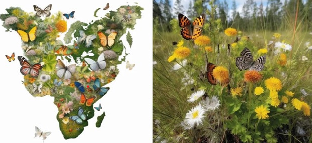 These computer-generated illustrations present an artistic representation of butterflies on the move. The depicted species are not real but were created for illustrative purposes to emphasize the movement of butterflies due to environmental changes.