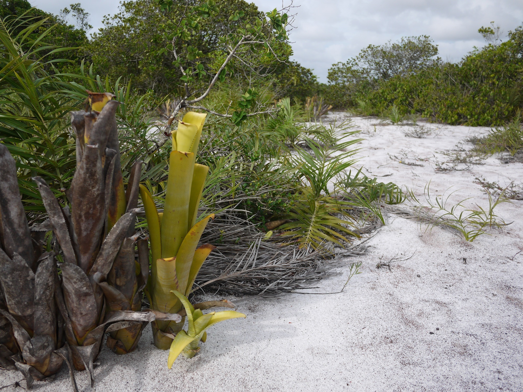 If this "pathway-centric" paradigm turned out to be accurate, it would greatly simplify the modeling of microbially catalyzed processes at ecosystem scales. This idea quickly captivated the microbiologists in our group; indeed, wouldn't it be nice to have some order in all this chaos? A key prediction of this pathway-centric paradigm, is that metabolic pathways should somehow display similar productivity (and hence, potentially, abundances) when compared across similar environments, even if the actual taxa performing these pathways changed. To test this prediction, we needed some type of natural ecosystem that's easily replicated and conveniently accessible. Bromeliad tanks, i.e., natural cavities formed by the plants' foliage, seemed like a good choice: In some regions of the world (such as the Jurubatiba National Park in Brazil), bromeliads occur in high numbers, and their tanks fill with rainwater and detritus, the decomposition of which supports rich microbial communities. As some of our colleagues from Canada and Brazil had extensive experience using bromeliads as model systems for ecology, this seemed like (and turned out to be) a perfect collaboration!