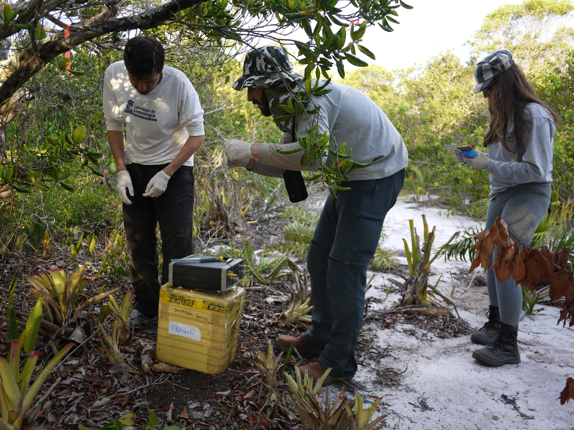 Our Brazilian collaborators performed wonders in organizing and facilitating the field work in Jurubatiba. Contrary to my fears, field work went through very smoothly and without any grant surprises, apart from a couple of snakes and frogs occasionally encountered inside the bromeliads. Samples for molecular analysis were immediately flash-frozen, in a high-tech setup involving socks attached to strings. I've learned a lot from this excursion; for example that even the toughest hiking boots dissolve in hot Brazilian sand-dunes, and that cheap centrifuge tubes violently explode when taken out of liquid nitrogen.