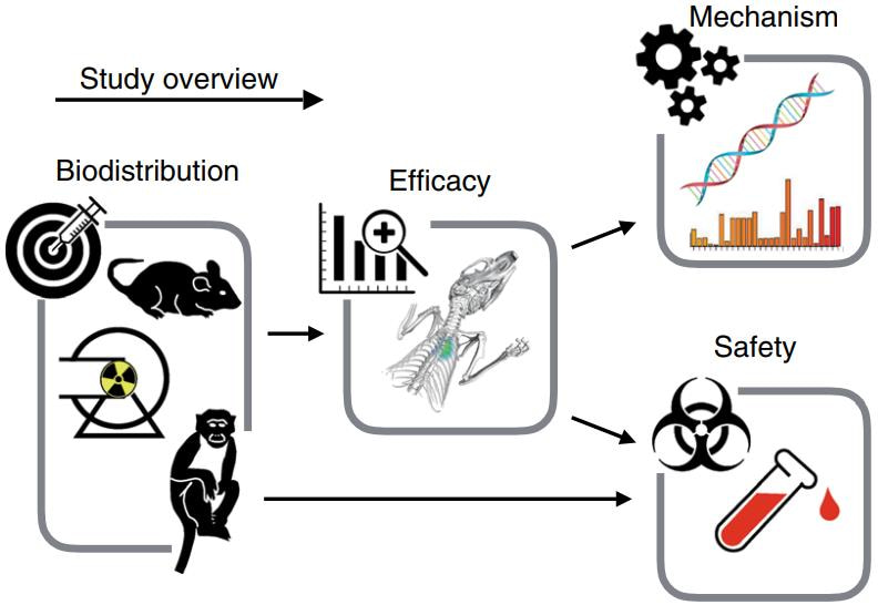 Figure 1. A multifaceted study design, ranging from the creation of a nanoimmunotherapeutic, the biodistribution, efficacy, mechanism and safety.