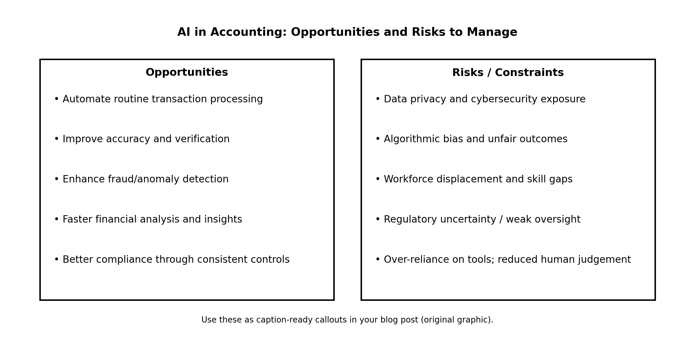 From an academic perspective, Alruwaili and Mgammal (2025) position AI adoption within Saudi Arabia’s broader transformation objectives and show that AI is perceived as capable of streamlining operations and enabling knowledge-intensive tasks in accounting. At the same time, they foreground constraints that are particularly consequential for the profession: skills and training gaps, ethical concerns (including bias), privacy/cybersecurity exposure, and regulatory/oversight readiness (Alruwaili & Mgammal, 2025).