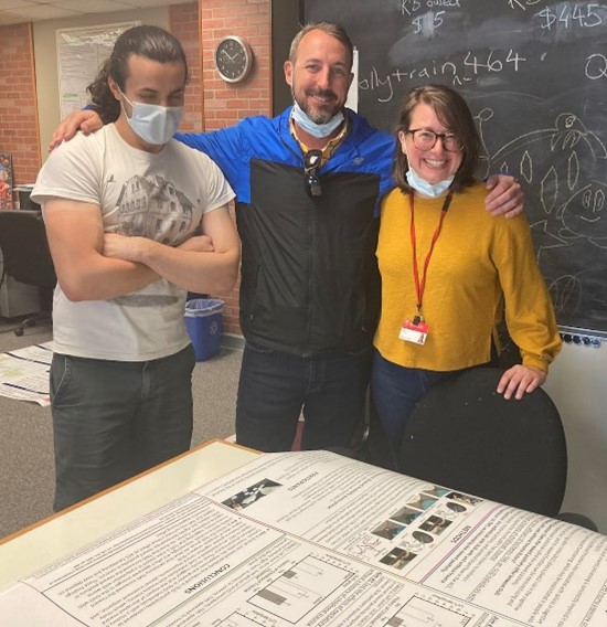 Figure: The moment we saw it. With first author Kathryn Biernacki (right) and co-author Malte Güth (left), seeing our results laid out for the first time. Active TMS had normalized the reward positivity in opioid users—the brain's reward response looked indistinguishable from healthy controls. After years of research showing blunted reward signals, we'd found a way to restore them.