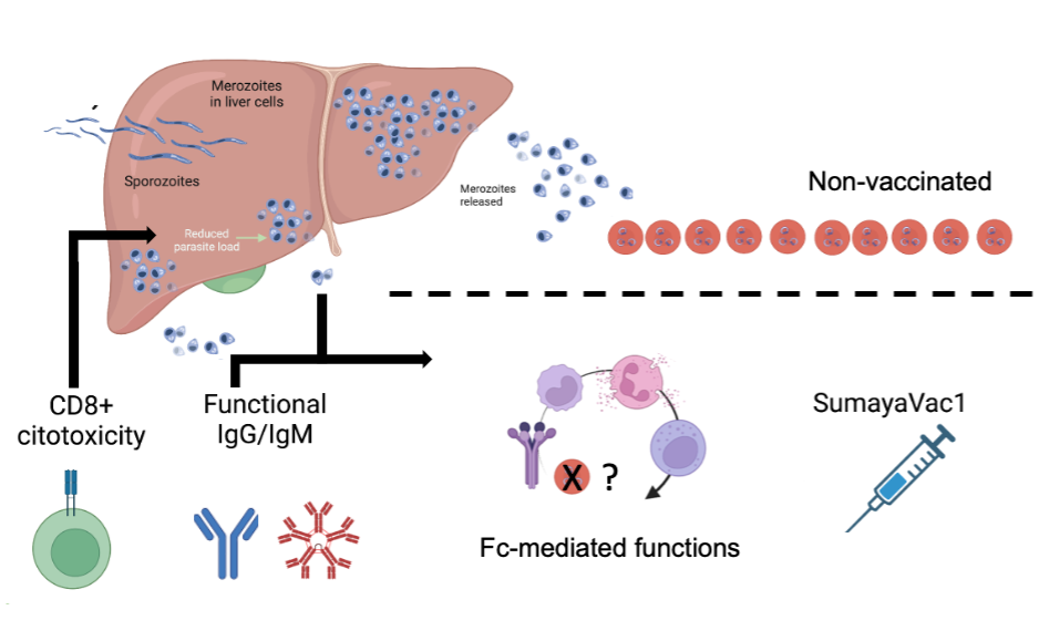 In our recently published paper in npj Vaccines we describe that both, IgG and IgM antibodies elicited by SumayaVac-1 can activate, in a strain transcending manner, potent Fc-mediated effector mechanisms involved in the interaction with complement as well as with various immune cells, including monocytes, neutrophils, and NK cells, known to combat parasites. Notably, the N-terminal fragment p83, which contains highly conserved regions, emerged as a key target of functional immunoglobulins. Additionally, SumayaVac-1 elicited a recallable cellular cytotoxicity by IFN-γ producing CD8+ T cells, although at a low scale.
