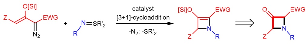 Fig. 1 Generation of 3-azetidinones using catalytic [3+1]-cycloaddition of silyl-protected enoldiazoacetates with imido-sulfur ylides
