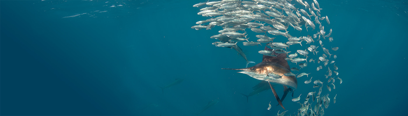 Large pelagic fish, such as the sailfish on the photo, are highly adapted to feeding on small pelagic fish.