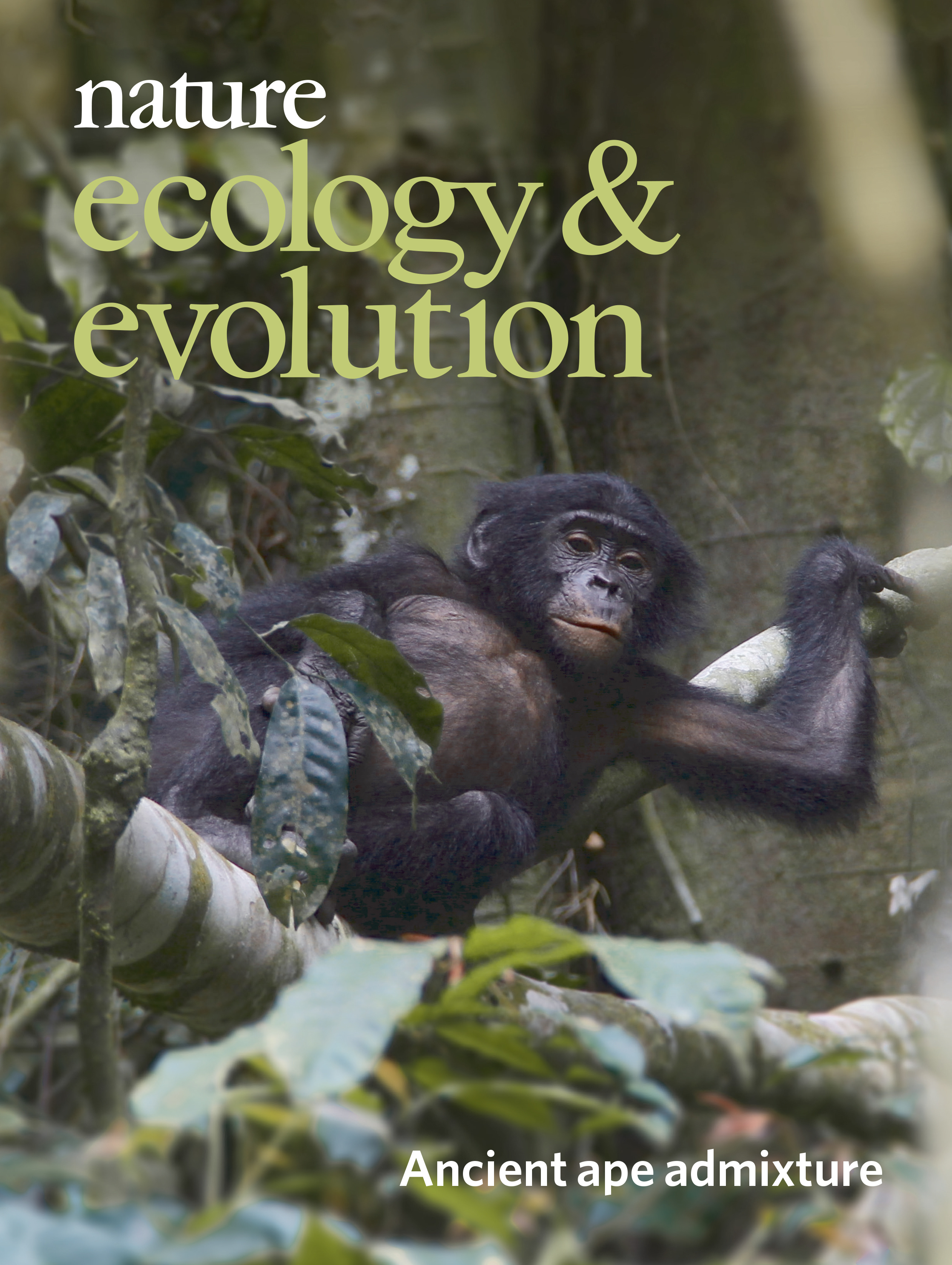 Bonobos, together with chimpanzees, are the closest living relatives of humans. They are known for their unique sociosexual behaviour and are found in the tropical forests of the Democratic Republic of Congo in Central Africa. Their genomes carry traces from an unknown extinct ape lineage as the result of an ancient admixture event. A wild bonobo at the Wamba field site is depicted. mage: Cintia Garai, Wildlife Messengers. Cover Design: Tulsi Voralia.