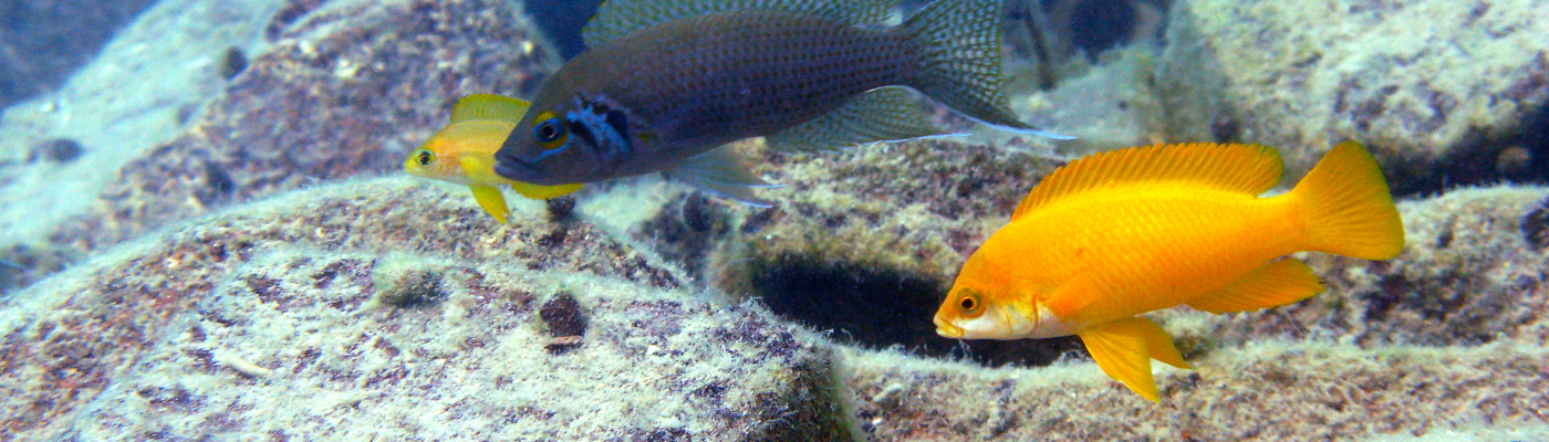 Neolamprologus pulcher, a cooperatively breeding cichlid fish. Photo by John Fitzpatrick.