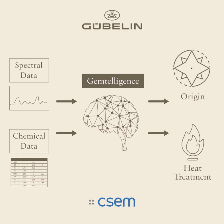 Gemtelligence processes analytical data in both spectral and tabular formats to determine the origin and treatment of gemstones.