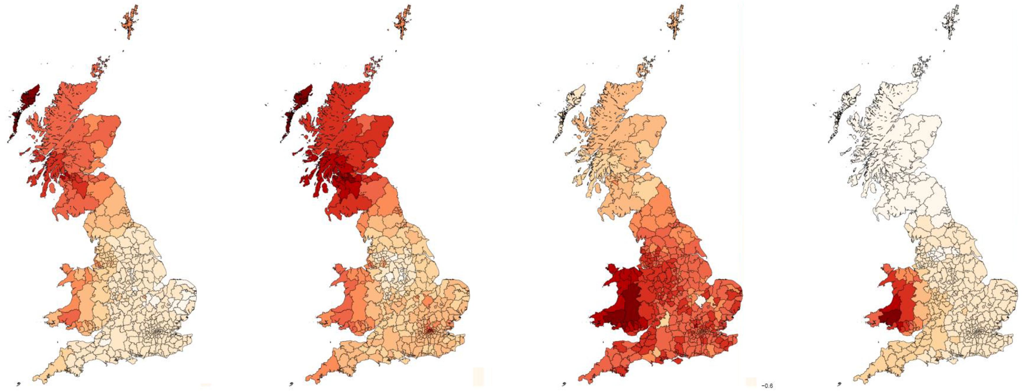 One of the GIS tutorials included the Brexit Referendum results as a practice dataset. As an exercise, I thought let’s see if these regional polygenic scores are predictive for Brexit results? This was not meant to be part of the project initially, but to our surprise, it worked pretty well. Especially for the educational attainment polygenic score. Where did this genetic signal for Brexit come from? I decided to find out by running a genome-wide association study on the regional Brexit measure, which also worked surprisingly well. We repeated this for a bunch of other regional measures, including more election outcomes and publicly available measures for socio-economic and health outcomes. On a regional level, the regional health outcomes showed an unexpectedly weak signal for health-related genes, but very strong signals for educational attainment genes, which we figured are just a very good proxy for the big differences in living circumstances between the richer and poorer regions. The living circumstances of poor neighborhoods that are making its inhabitants less healthy are probably the same that are driving people with a higher education to migrate away and the people that stayed behind to vote against the political status quo.