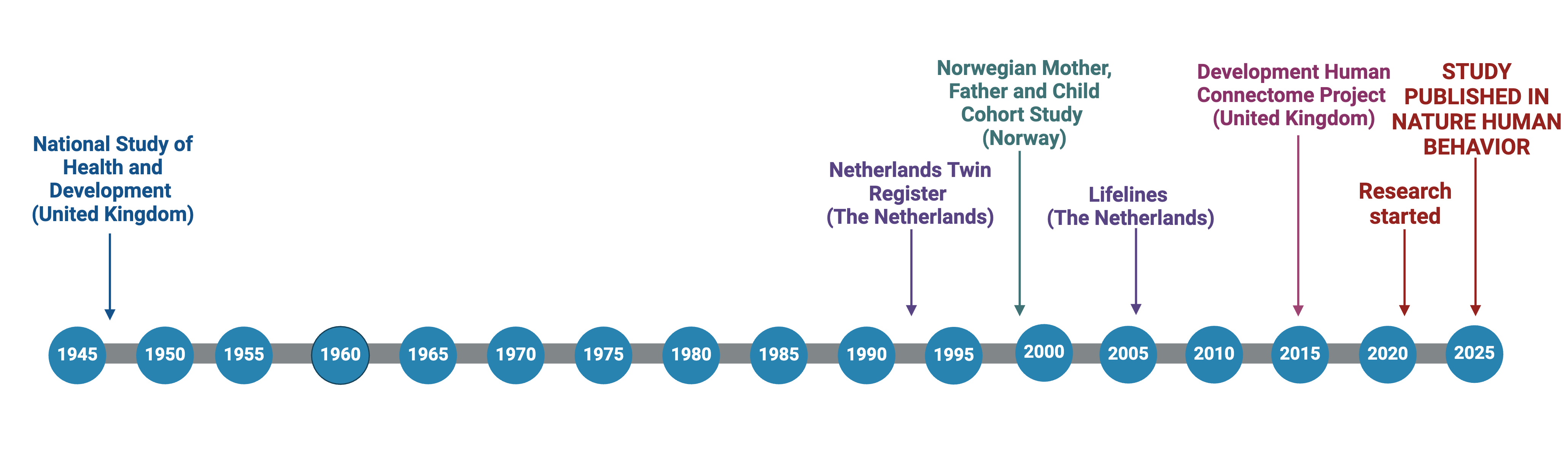 Science is sometimes quite slow, but 80 years?! Our study began officially four years ago, in March 2021, when our funding began from the Simons Foundation. But the 70,000 infant participants come from several different cohorts. The oldest cohort in our study were born in 1946. So our project did indeed take nearly 80 years from start to finish! (Figure 5). We are very grateful to all the cohorts who collaborated with us, and all the participants of course!