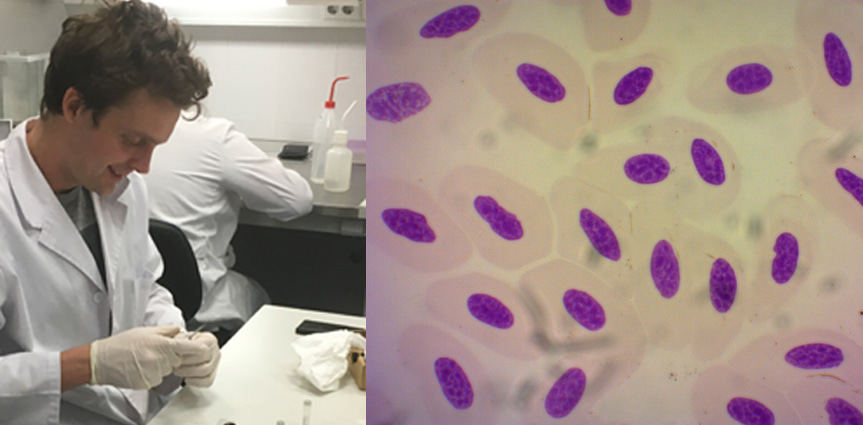 The first unplanned step we needed to do ‘while-at-it’, was to fill the gap in knowledge that cecilian genomes represented. Living amphibians are composed of three main groups (roughly, frogs, salamanders and cecilians), and the genome size data for the most secretive and understudied of the three was almost non-existent. To that end we joined forces with David Gower and Mark Wilkinson (NHM, UK) and obtained tissues from museum specimens to cover all currently recognized families. We also completed the sampling for frogs and salamanders by incorporating more direct developers, and some other interesting species, as the largest known frog (Conraua goliath) and one of the smallest (Sooglossus sechellensis), as well as the only known extant viviparous anurans, Nimbaphrynoides and Nectophrynoides.