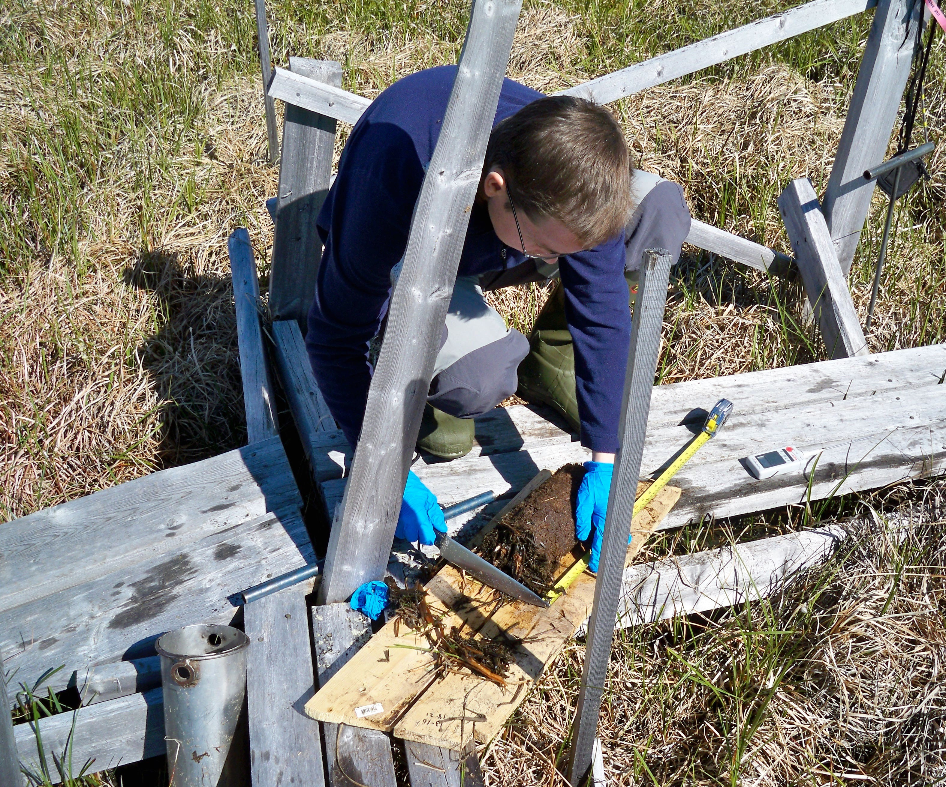 Gene Tyson sampling from a fen core. Photo by Virginia Rich