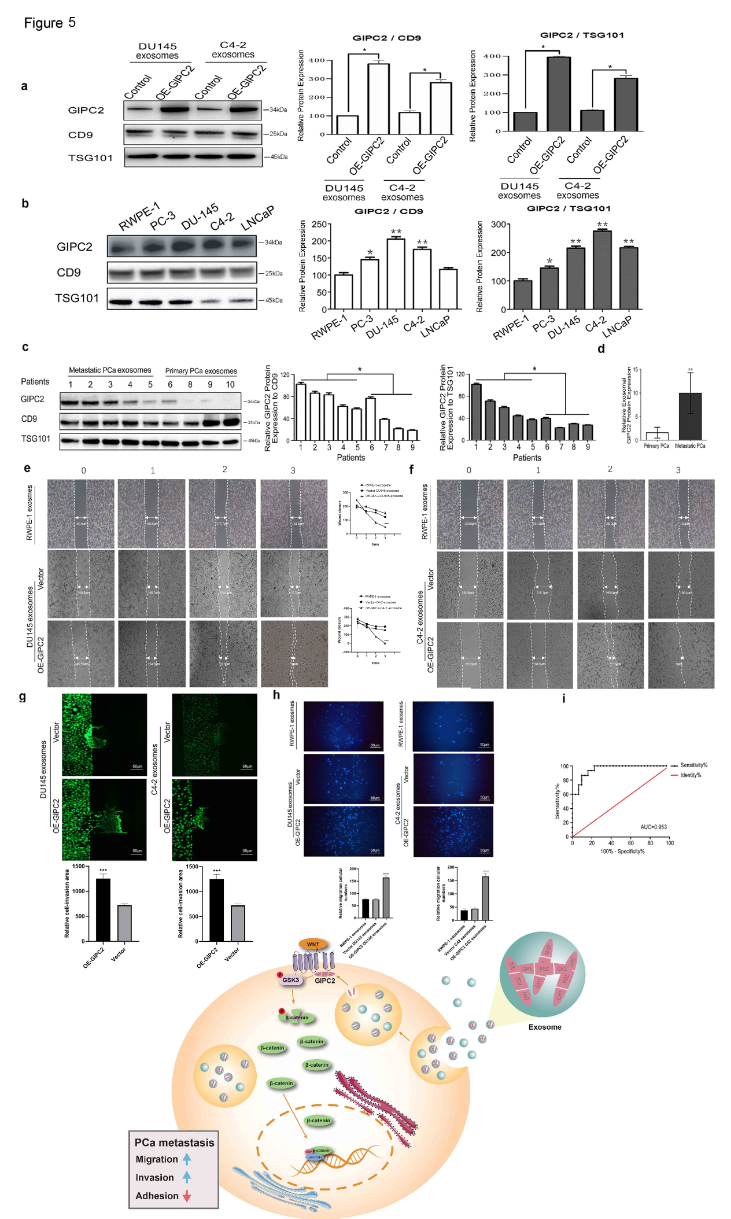 - The presence of GIPC2 in tumor-derived exosomes and ability to impact the behavior of tumor cells suggest that GIPC2 is a novel epigenetic oncogene involved in PCa metastasis. Our findings identified GIPC2 as a novel exosomal molecule associated with WNT signaling and may represent a potential therapeutic target and biomarker for metastatic PCa.