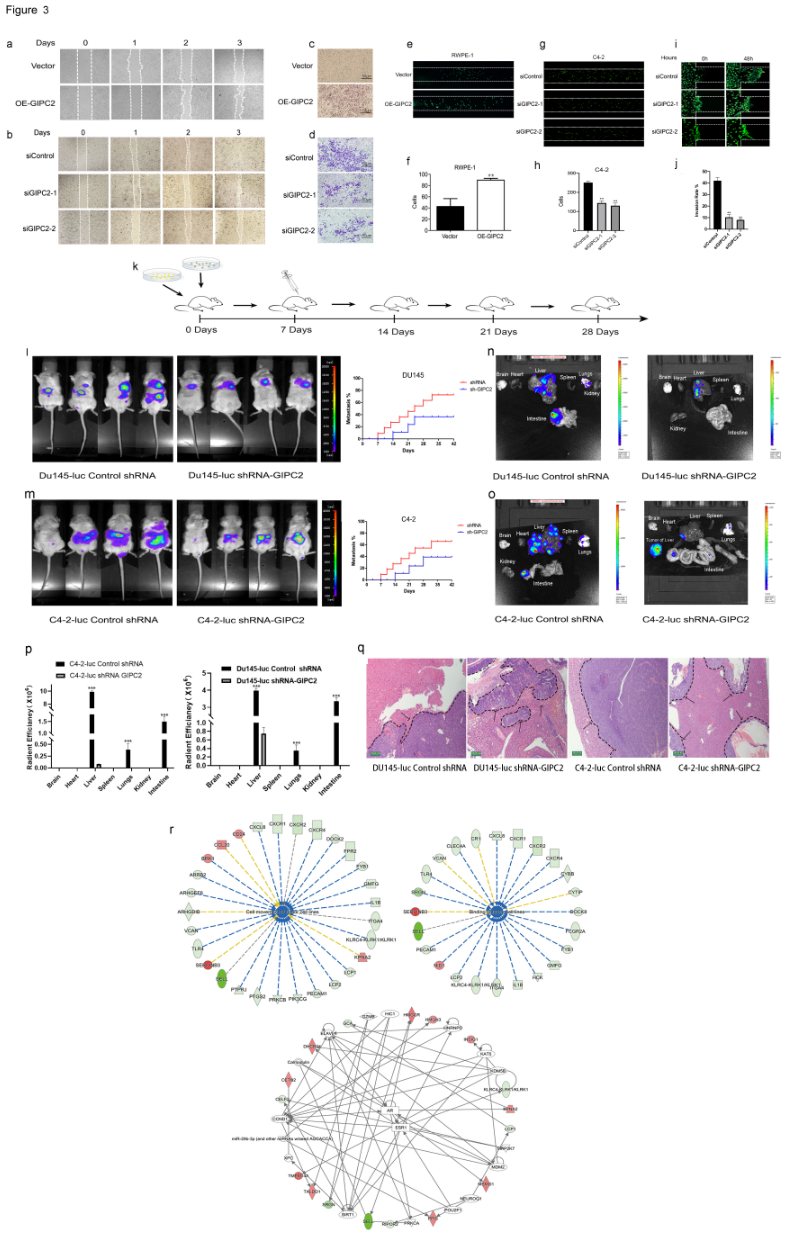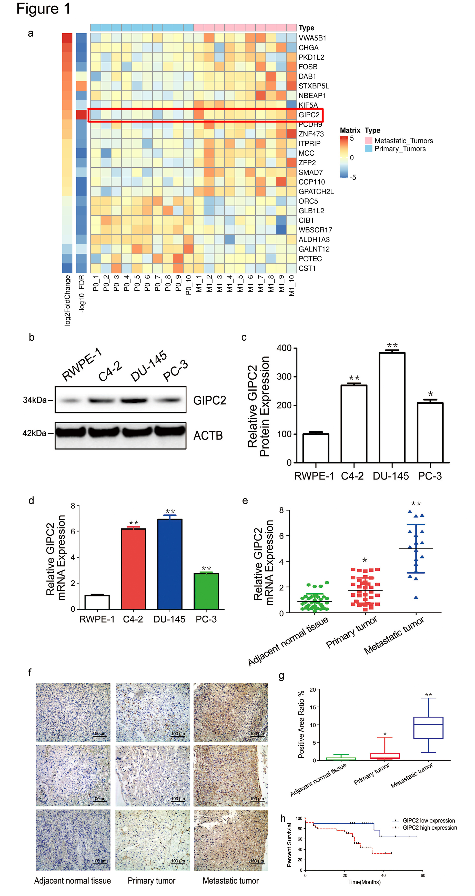 - In this research, we identified a novel putative oncogenic gene GIPC2 mainly expressed in exosomes, which was regulated by epigenetics in PCa tumorigenesis. And first time, we showed that CpG island of GIPC2 promoter was significantly demethylated accounted for its frequent overexpression GIPC2, which was a very common event in metastatic PCa (Figure 1).