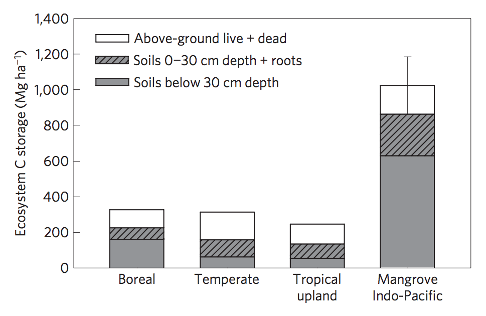 Mangrove compared to other forest type carbon stocks