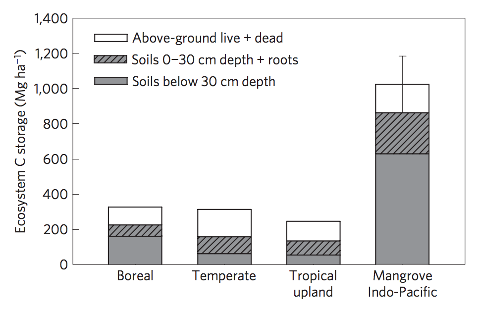 Donato DC, Kauffman JB, Murdiyarso D, Kurnianto S, Stidham M, Kanninen M. Mangroves among the Most Carbon-Rich Forests in the Tropics. Nature Geoscience 2011, 4(5): 293-297.
