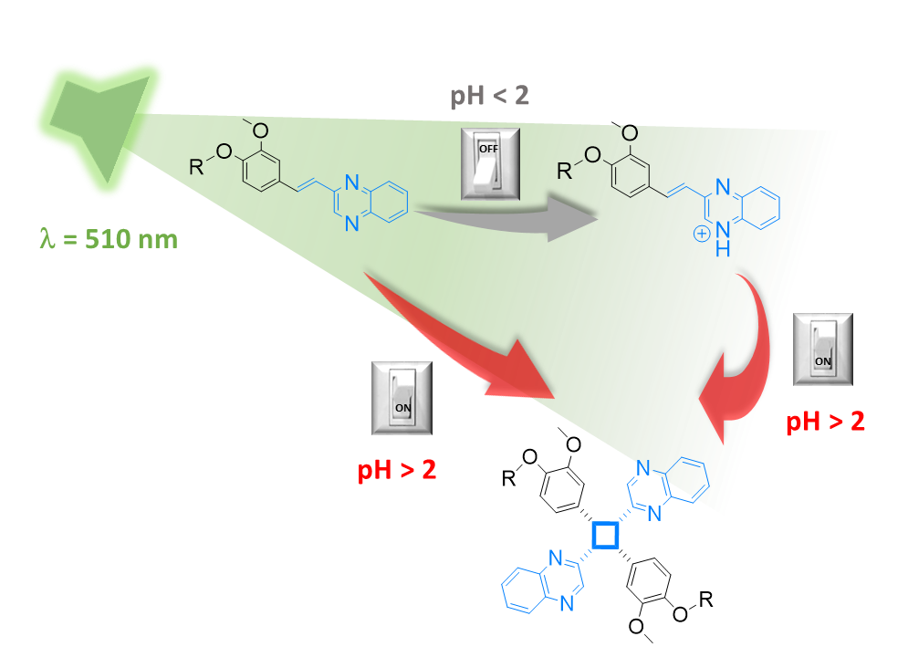 Green light triggered [2+2] cycloaddition of halochromic styrylquinoxaline—controlling photoreactivity by pH