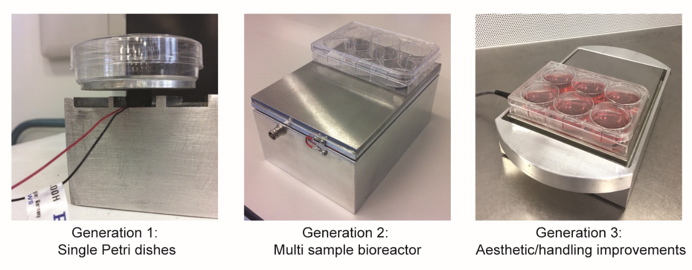 Earlier work had focussed on vibrating single petri dishes with cells growing in 2D monolayers. However, interest soon turned towards 3D skeletal tissue engineering. Dr Peter Childs focussed on developing the new vibrational bioreactor presented in the paper. This overcame limitations of using single petri dishes but also allowed the process to be scaled to stimulate larger volumes of cells. Although the vibration of culture plates and 3D hydrogels may appear a simple task, it was found that inconsistent vibration transmission was all too easy to achieve!