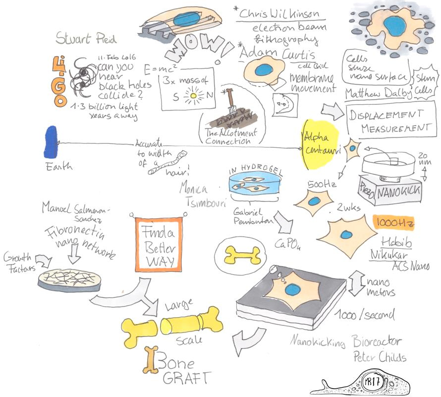 However, producing consistent vibration with nanoscale precision is a new technical challenge and in Adam Curtis’s words “if you find you need a technique you haven’t got, you really need to collaborate”. Indeed, to overcome the challenges and to design the bioreactor required the expertise of cell engineers, bioengineers and gravitational-wave physicists. This itself brings challenges in communication due to the varied language used in each field.