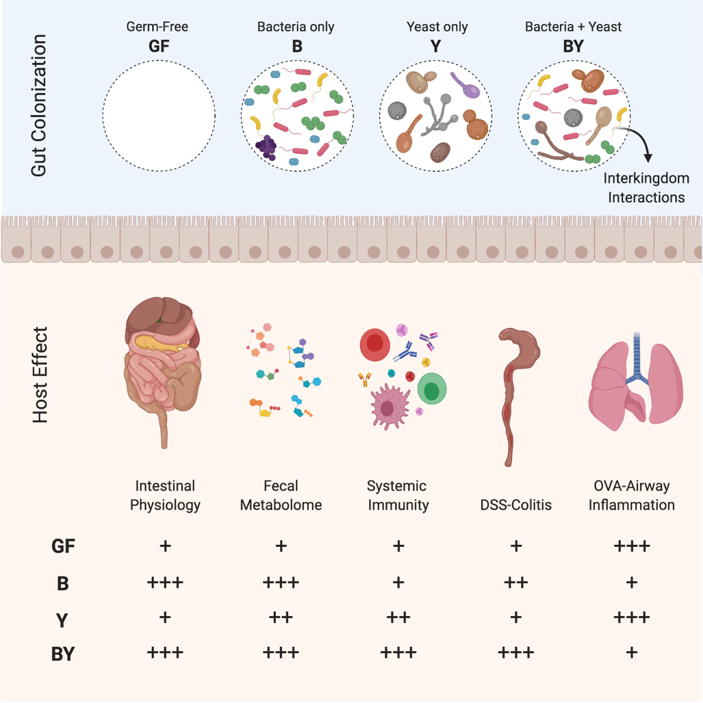 Many fundamental scientific questions remain unanswered about the processes that govern symbiotic relationships between microbiomes and their hosts. Take for example the poorly understood role of gut fungi. Fungi are omnipresent in microbial communities, and have well-described prominent roles in soil, marine, plant, and even food microbiomes. But what about the gut microbiome? Do gut fungi directly impact microbiome ecology, gut physiology and host immunity?